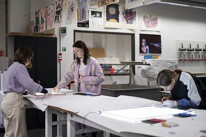 Je hebt toegang tot de nieuwste technologie en technieken in onze techlabs, studio’s en werkplaatsen. Je ontwikkelt hier skills, leert met verschillende materialen werken, doet onderzoek en bent vooral veel aan het maken. Onze experts leren je de skills om deze technologie en technieken toe te passen en er is volop apparatuur aanwezig om mee te experimenteren.